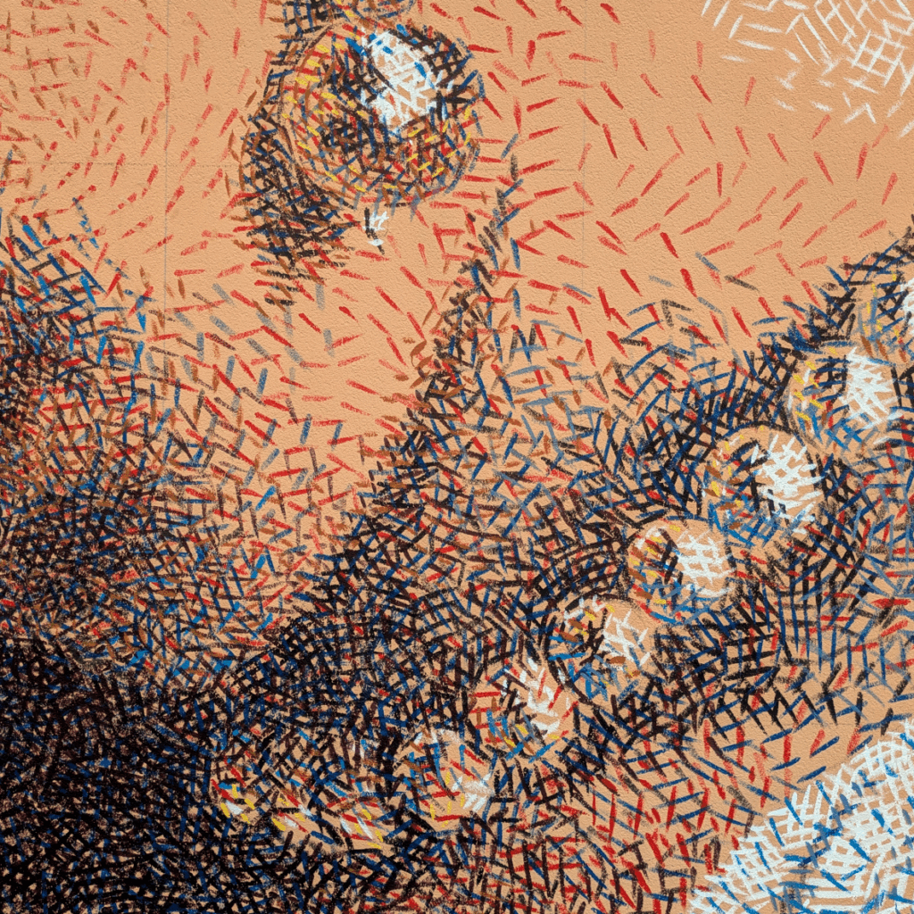 L’esquisse originale du projet aux Posca et encre sur toile en 70×70 cm, figure dans l’exposition « Révise tes classiques ! » à la galerie Artfontainebleau qui est à deux pas du mur. Une édition de digigraphies sur papier d’art Somerset Velvet 330g d’après l’œuvre sur toile est également en vente à la galerie (50×50 cm, 30 exemplaires numérotés et signés).