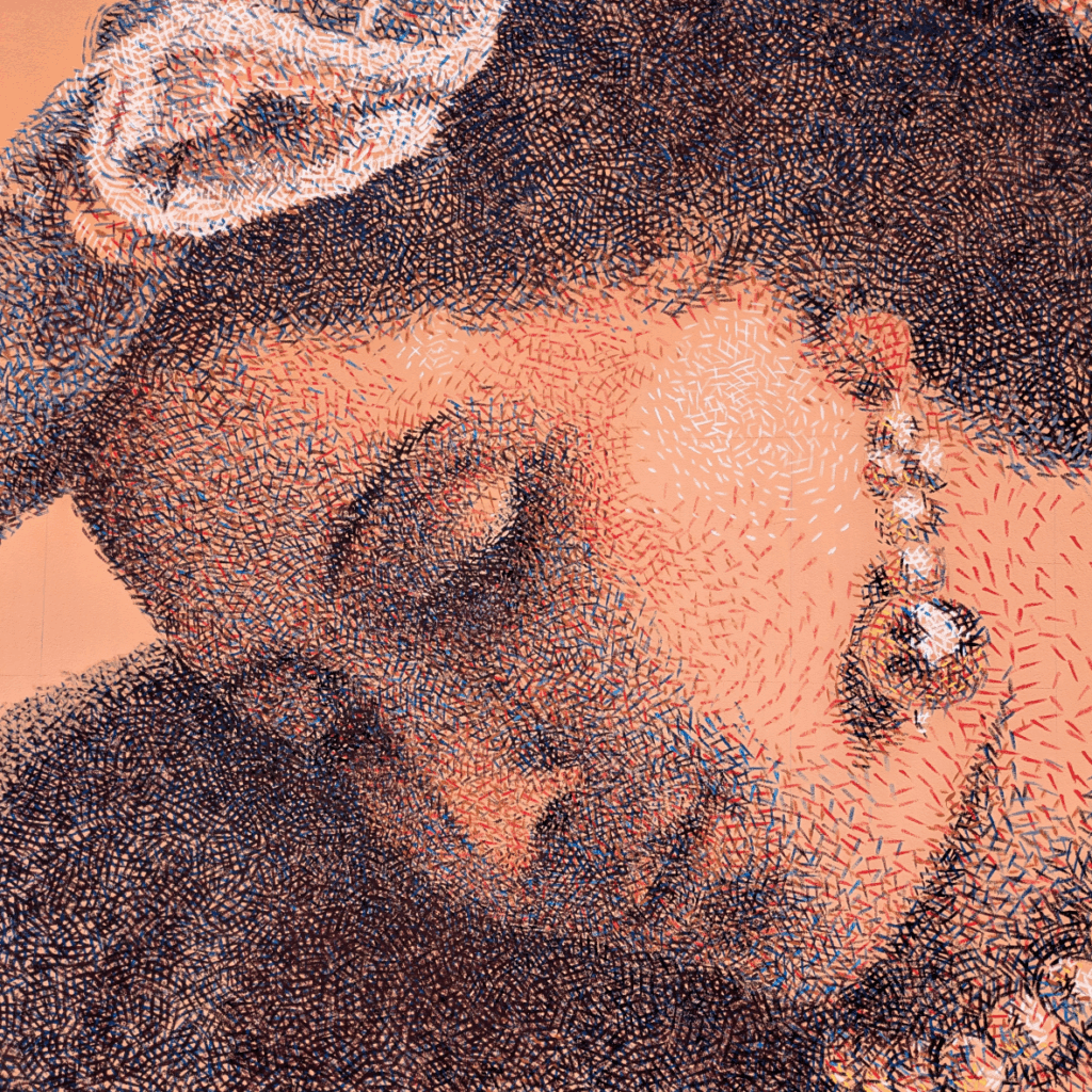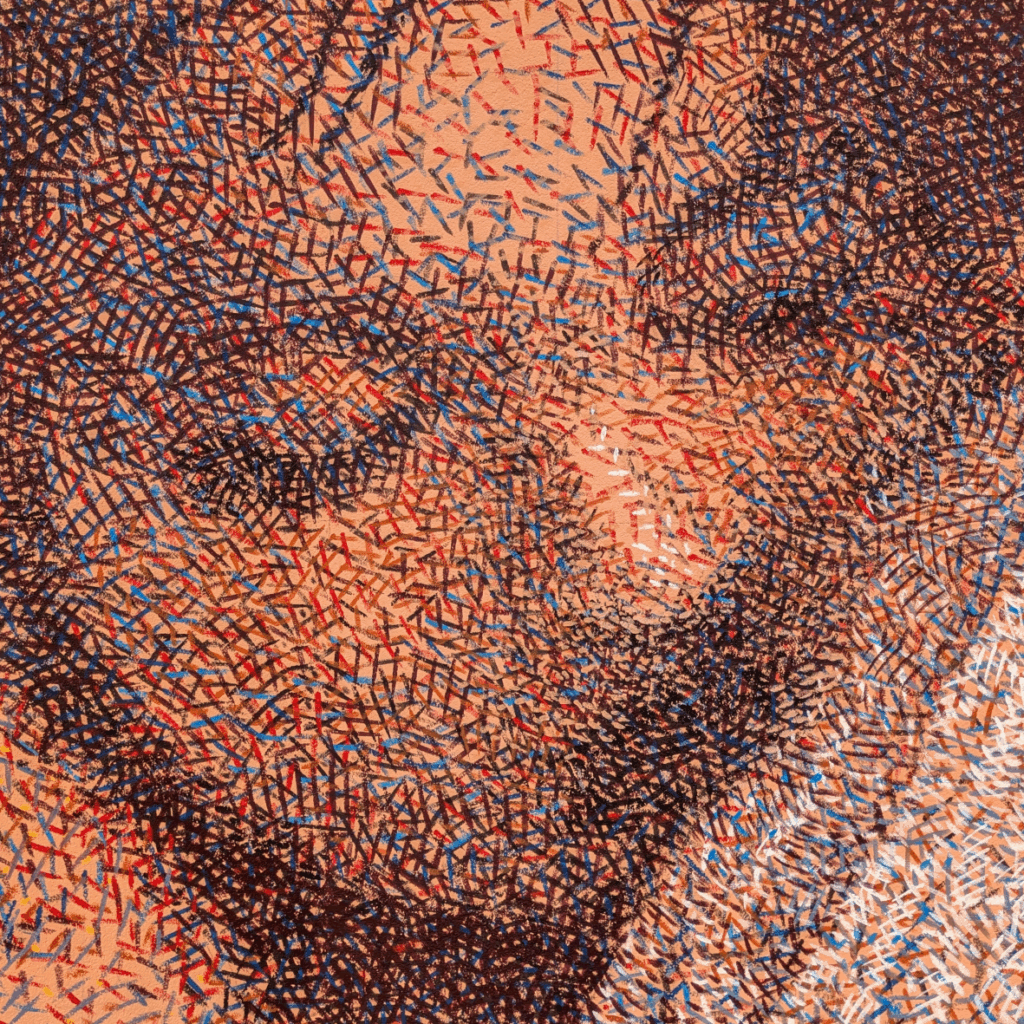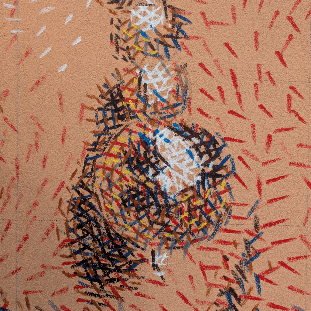 Titre « N P LÉ N », peinture acrylique et pinceau, 18×20 m.