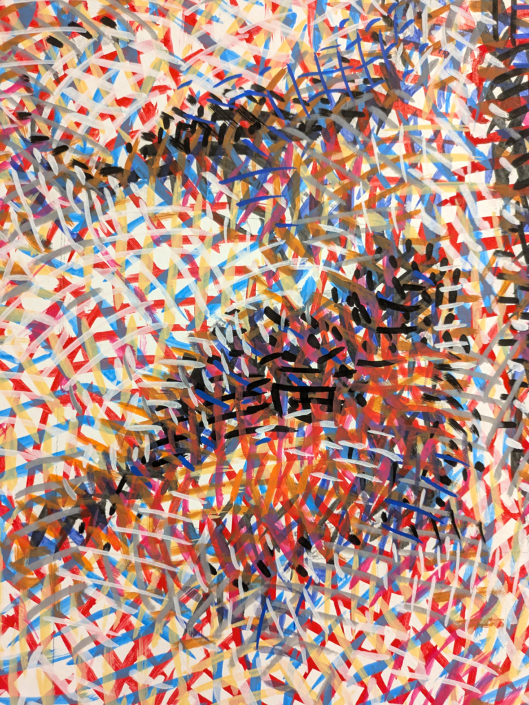 Titre « N P LÉ N », peinture acrylique et pinceau, 18×20 m.