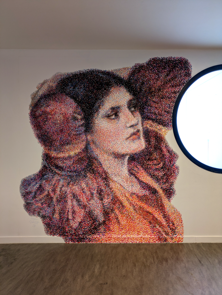 L’esquisse originale du projet aux Posca et encre sur toile en 70×70 cm, figure dans l’exposition « Révise tes classiques ! » à la galerie Artfontainebleau qui est à deux pas du mur. Une édition de digigraphies sur papier d’art Somerset Velvet 330g d’après l’œuvre sur toile est également en vente à la galerie (50×50 cm, 30 exemplaires numérotés et signés).